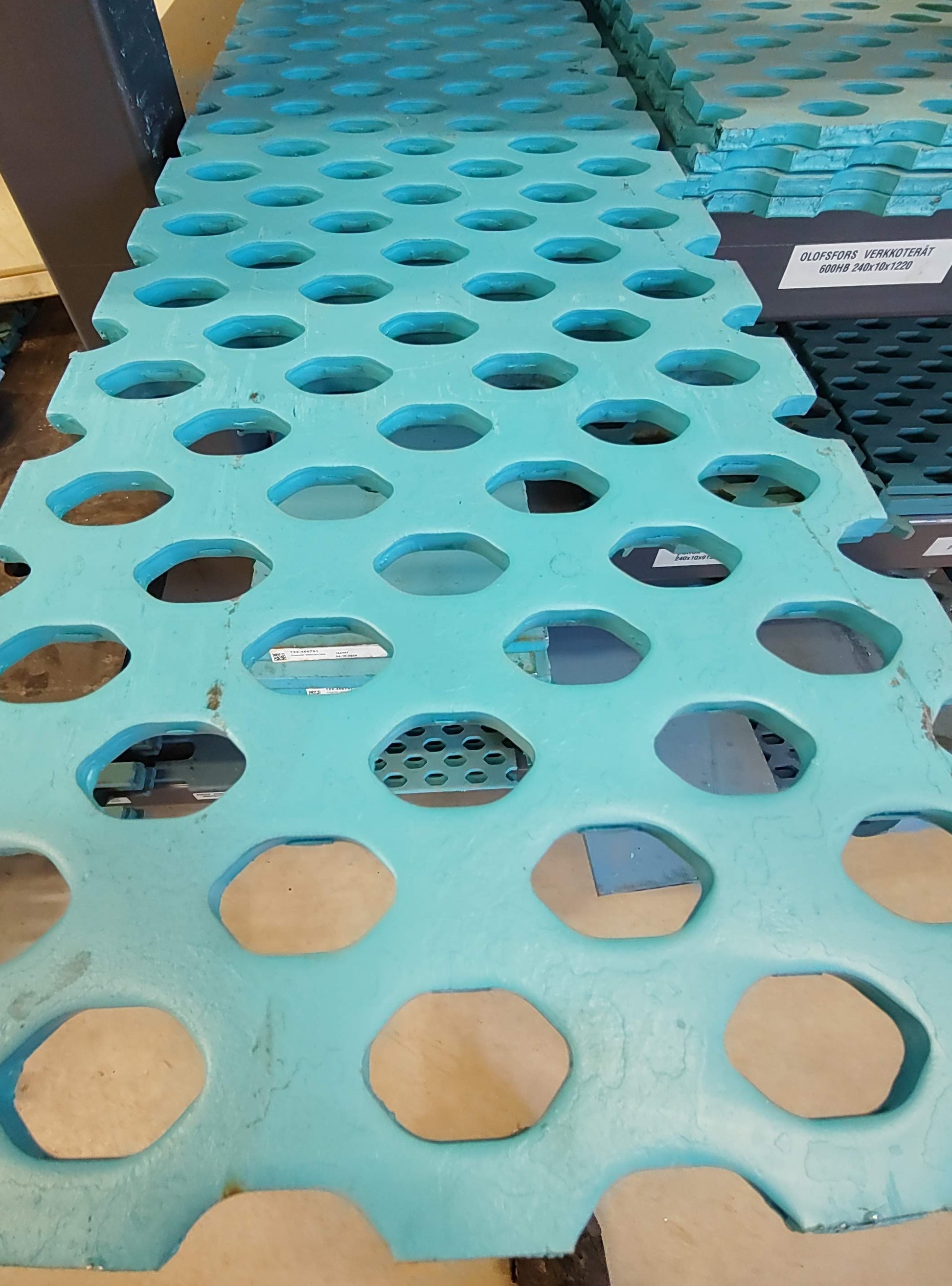 Verkkomallinen tieterä. Pulttijako 305mm. Kovuus 600HB. Ketjutettava terä, eli pulttijako säilyy vierekkäin asennettaessa.